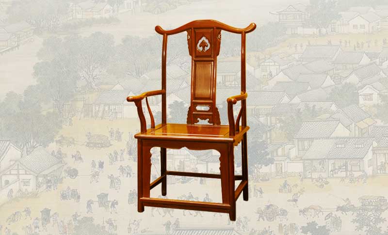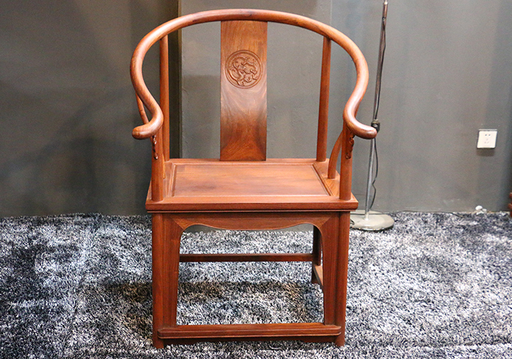 再則是官帽椅,官帽椅可分為南官帽椅和四出頭式官帽椅兩種。所謂四出頭,實質(zhì)就是靠背椅子的搭腦兩端、左右扶手的前端出頭,背板多為“S”型,而且多用一塊整版制成。南官帽椅的特點是在椅背立柱和搭腦相接處作出軟圓角,由立柱作榫頭,橫梁作榫窩的煙袋鍋式做法。椅背有使用一整版做成”S”形,也有采用邊框鑲板做法,雕有圖案,美觀大方。