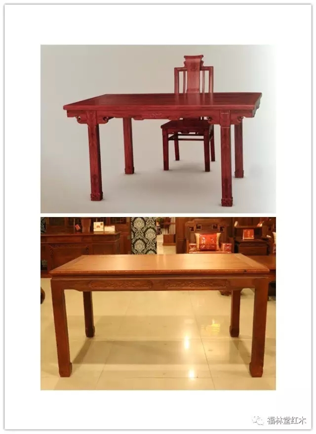 一、在形制上的區(qū)別:桌是四足頂住桌面四角的;案是四足內(nèi)縮進(jìn)來(lái)一部分的。下圖上半部分是案,下半部分是桌,可以仔細(xì)看看: